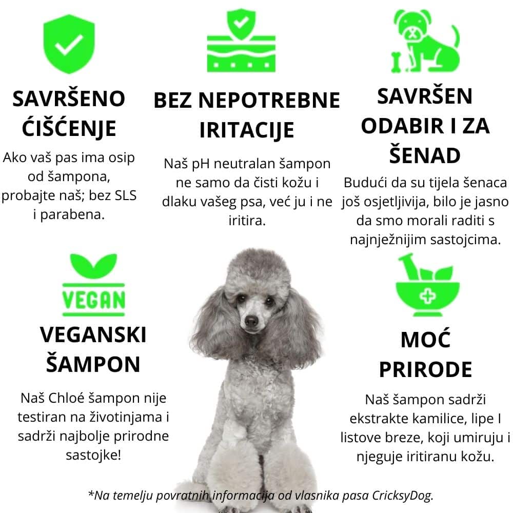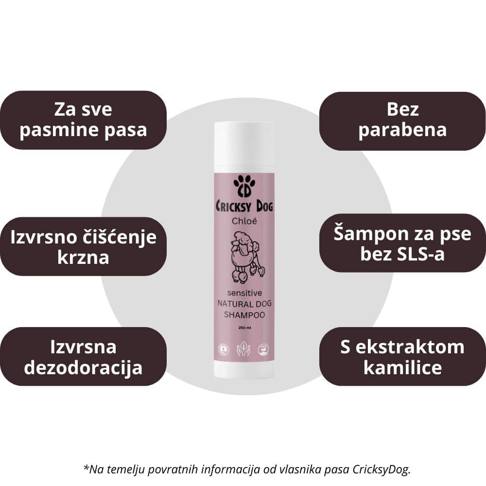 - Prilagođen osjetljivoj koži: Posebno razvijen za pse sklone alergijama i kožnim problemima, kao i za nježnu kožu štenaca.