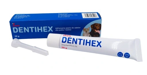 Kada koristite Dentihex pastu izravno u usnoj šupljini, preporučuje se pričvrstiti aplikator na tubu radi lakšeg pristupa stražnjim desnima. Pažljivo razmažite pastu po području čistim prstom. U usnoj šupljini, pastu razmažite jezikom životinje. Dentihex se može primjenjivati prema potrebi, dnevno ili tjedno. Za najbolje rezultate, Dentihex treba koristiti nakon obroka.