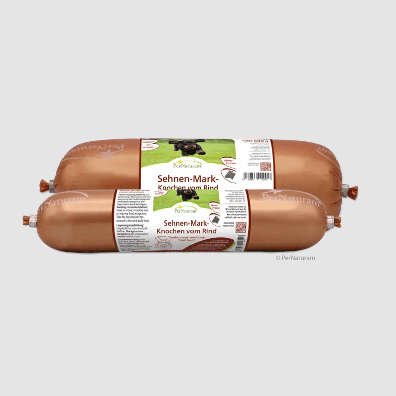 Kobasica od goveđe tetive PerNaturam je napravljena od visokokvalitetnih sastojaka, uključujući goveđu krv, juhu, vratne tetive, mesno koštano brašno i mast. Sadrži sirove bjelančevine u količini od 16,9%, masti 11,5%, sirovi pepeo 3,8%, sirova vlakna 3,9% i vlagu 63,3%. Također sadrži minerale poput kalcija, fosfora i natrija, te dodatak Agar Agara.